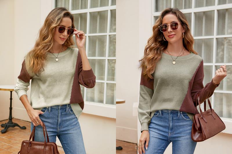 【Match】: This loose color block sweater looks great with jeans, leggings, skirts, shorts, casual pants, heels, sneakers, delicate necklaces, stylish bags, casual jackets, and more. You can also match anything you like inside, like tank top, crop top, vest, etc.
